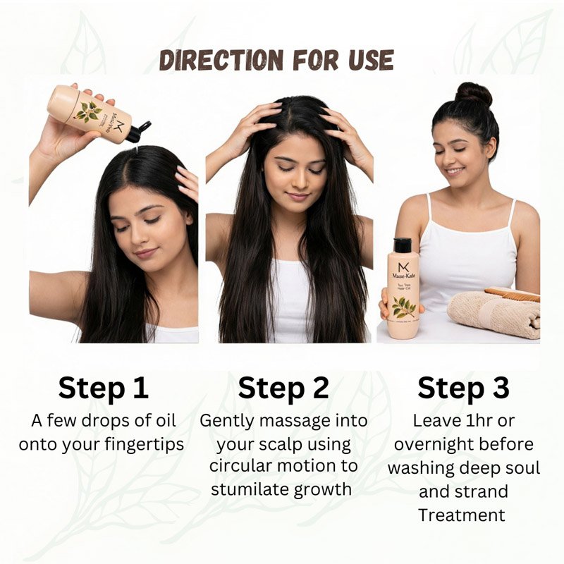 - Sebum Equilibrium: For those with oily hair, Tea Tree oil regulates the scalp’s natural oil production. It ensures your scalp remains hydrated but never greasy, extending the life of your blowout and style.